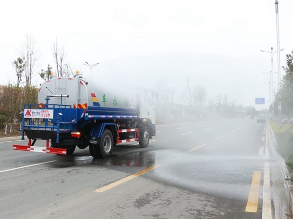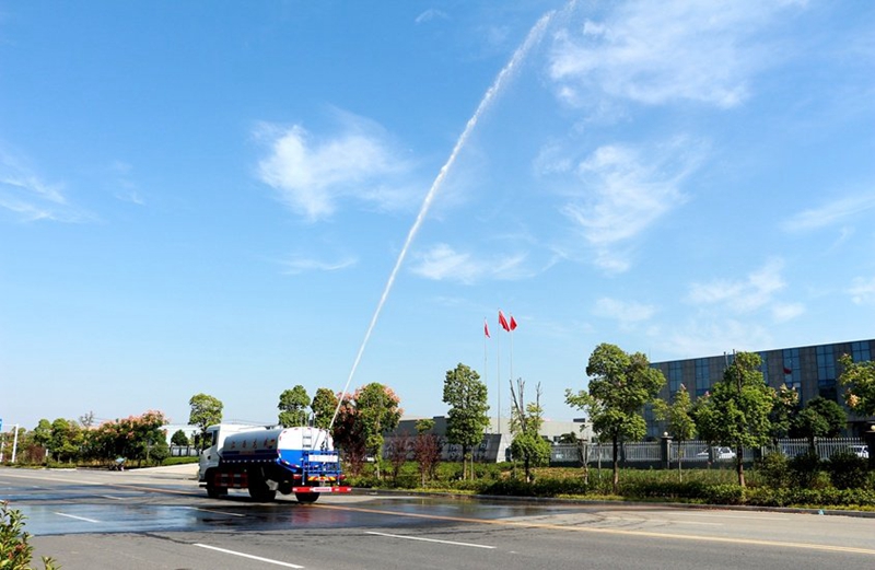 玉柴180馬力發動機,法士特8檔變速箱,9.00鋼絲輪胎,2.8T/8T前后橋、ABS。采用大流量水泵,基本灑水功能前沖、后灑、側噴、工作平臺帶高炮(可調節成霧狀、直柱狀)、可泵進泵出、罐體兩側炮筒、帶兩根抽水軟管。