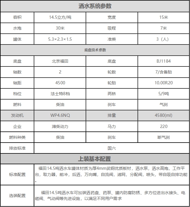 福田領航ES7 15方灑水車