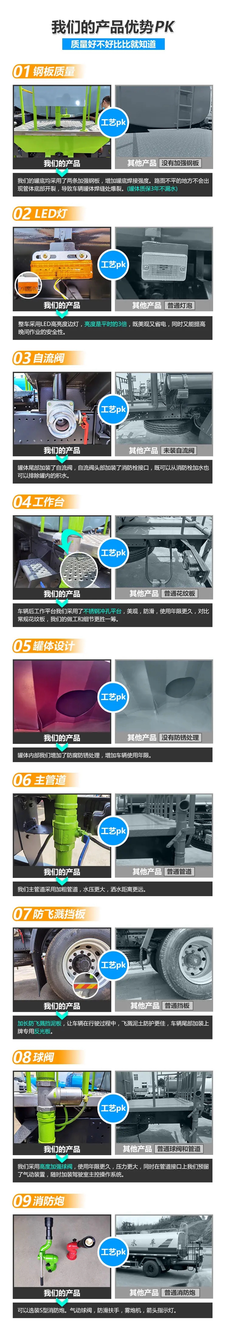 隨車附件:隨車工具1套、尖嘴噴頭2個、鴨嘴噴頭2個、花灑噴頭2個、水炮1個、吸水管2根、小工具鎖2個、各類密封圈及墊片若干。