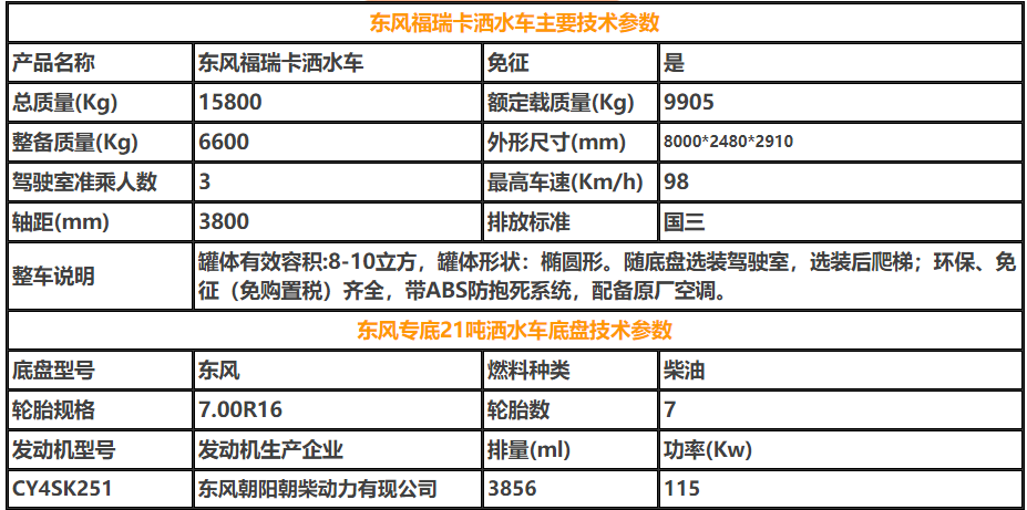 國六東風(fēng)小福瑞卡 5噸 灑水車 核心參數(shù)項目參數(shù)軸距(mm)3308…