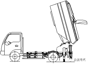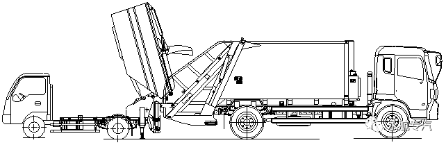 3.1到達垃圾站,伸出支腿,傾翻垃圾箱,打開滑板及刮板,傾倒垃圾。