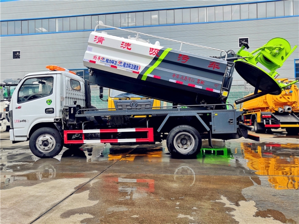 吸污部分:3.8方污罐,罐體5mmQ235優質碳鋼,配淄博SK-9水循環泵,8米吸污管一根,進氣管加過濾網,防溢閥加高,后蓋卡扣鎖緊,前視污亮管,后尾部加裝1個力拓牌100mm的球閥均帶出口,罐體帶舉升功能,后門帶液壓開啟。