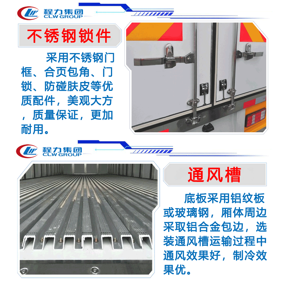 上裝配置:箱體為內(nèi)外玻璃鋼板,中間保溫材料為8cm聚氨酯保溫板,鋁花紋底板,箱體鋁合金型材包邊,包角,配雙開后門,單開側門,不銹鋼門框、鎖件、鉸鏈,其余