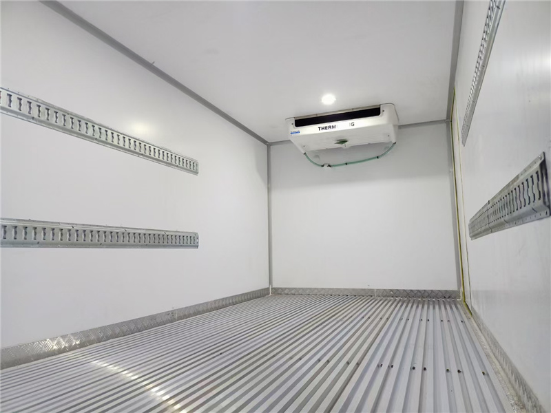 (2)廂板材質(zhì):內(nèi)外壁板選用國(guó)內(nèi)優(yōu)質(zhì)玻璃鋼(不吸光、隔熱性好、硬度強(qiáng)、抗氧化);中間保溫層為XPS擠塑聚笨板;廂體厚度8CM。地板采用鋁花紋板,門邊條采用迷宮式橡膠密封條。